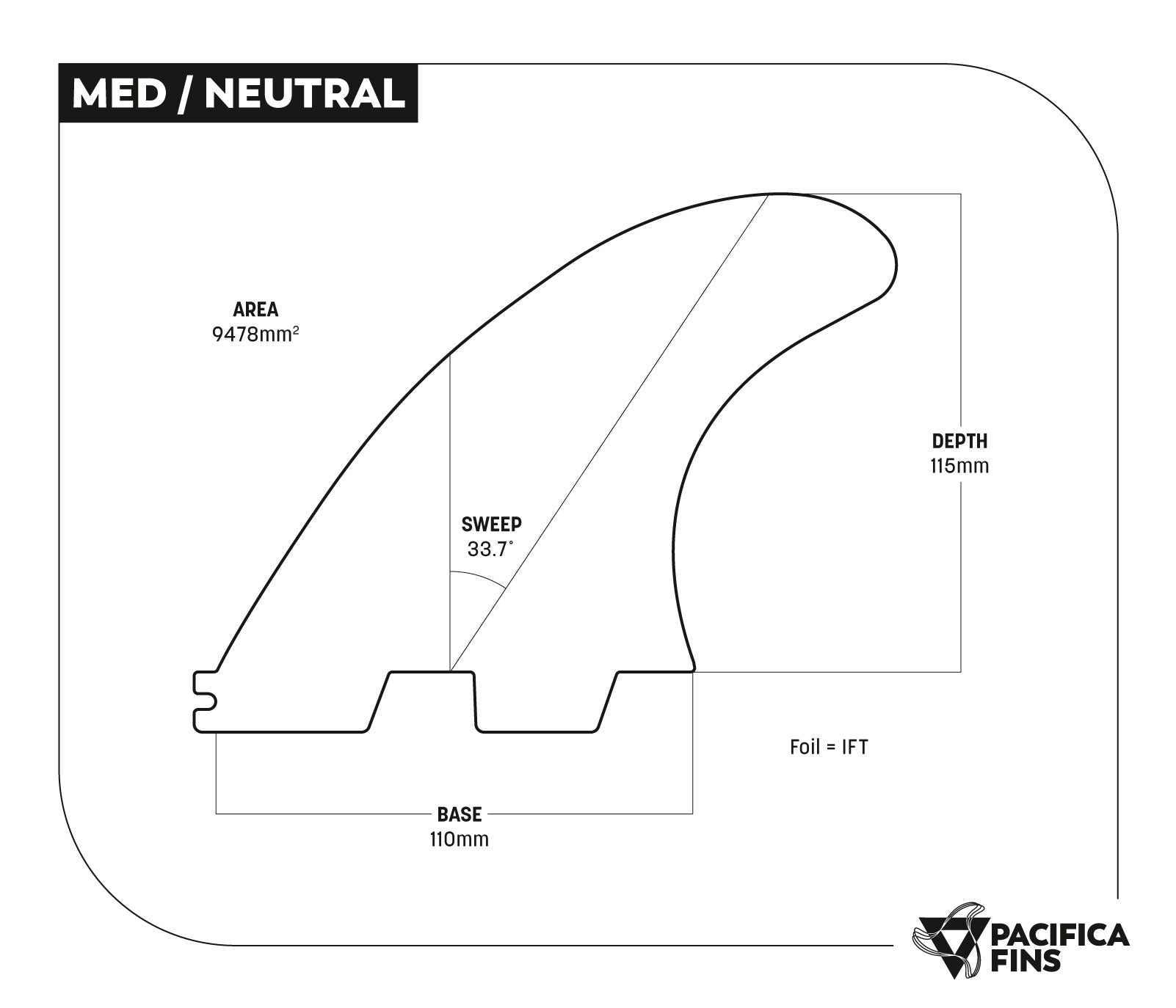 With a 33.7 degree sweep, these fins are designed for a balance of pivot, speed and hold. They go well in all board types and are our suggestion for your go to all-round fins for beach breaks, points and reefs. If you are used to riding Futures fins, the Pacifica Neutrals will feel most similar to the Futures Neutral fin group.